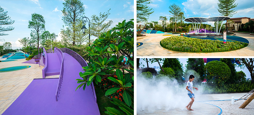 佛山云東海地區自古以來就水面彌漫百里,稱之“古云東海”。云東海高爾夫花園洛嘉兒童主題樂園以水作為核心元素進行發想,以創造五彩泡泡家園夢幻旅程為設計核心理念。設計師在這里用五彩泡泡的概念實現了大小朋友們的夢想,利用非動力兒童游樂設施的概念打造兒童游樂場,為孩子們提供可持續快樂!