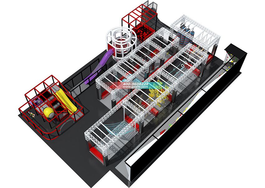奇樂游樂是游樂設備實力廠家,美國 Galaxy Multi Rides是奇樂在美國做的忍者道拓展項目,是一個在戶外搭建起來的拓展項目,室內大人,青少年挑戰,游玩的項目。本忍者道拓展有攀巖墻,空中攀爬挑戰關卡都能多種拓展項目,是由奇樂優秀的設計師團隊設計出來的方案,忍者道拓展項目在國外是非常流行的一種項目之一,它是可以鍛煉游玩者的體能,需要有優秀的身體素質,也能鍛煉游玩者的身體。