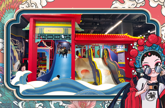 益童歡樂園以兒童游樂為中心,融入多種親子互動、少兒益智的優質項目,包括了滑梯、球池、沙池、椰子樹、彈跳迷宮等項目,玩法豐富有助于兒童身心健康成長。國潮風主題形象地將帶有濃郁傳統節日文化色彩的喜慶元素展現出來,從而增強了樂園文化屬性。真正將中華文化精粹植入樂園項目中,為游客打造一個傳承悠久歷史文明的古風世界,使孩子們在玩樂中從小培養起對傳統文化的認同與自豪感。