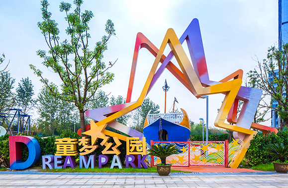 童夢公園的場地設計,以孩子的美好的夢境為主題,講述了圍繞不同的夢境展開的故事,主要分自由夢境、奇幻夢境、懷舊夢境和五彩夢境,并把每個夢中的故事融入到每個場地分區中,每個夢境區結合一個主要的時尚藝術游樂裝置形成特色標志;