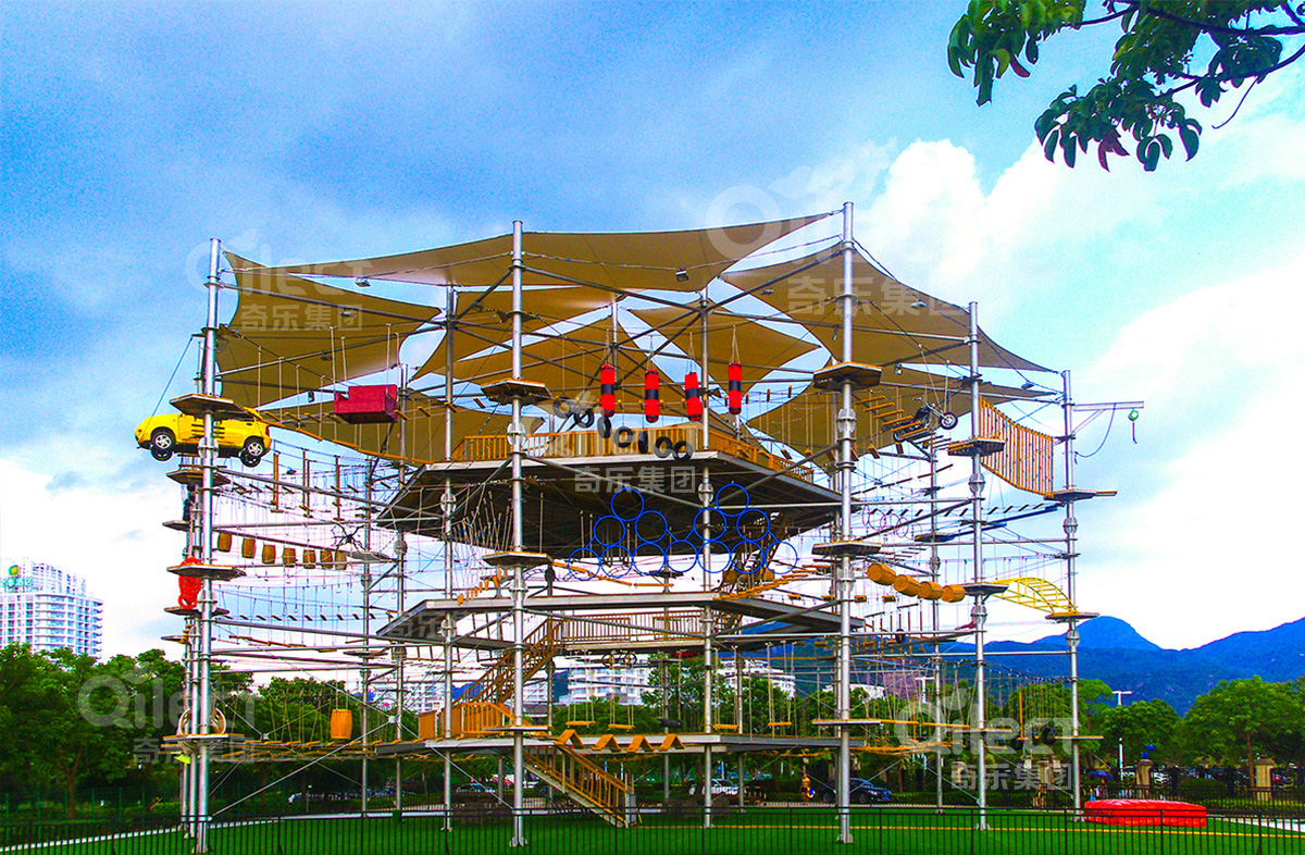 奇樂游樂是游樂設備實力廠家,美國 Galaxy Multi Rides是奇樂在美國做的忍者道拓展項目,是一個在戶外搭建起來的拓展項目,室內大人,青少年挑戰,游玩的項目。本忍者道拓展有攀巖墻,空中攀爬挑戰關卡都能多種拓展項目,是由奇樂優秀的設計師團隊設計出來的方案,忍者道拓展項目在國外是非常流行的一種項目之一,它是可以鍛煉游玩者的體能,需要有優秀的身體素質,也能鍛煉游玩者的身體。
