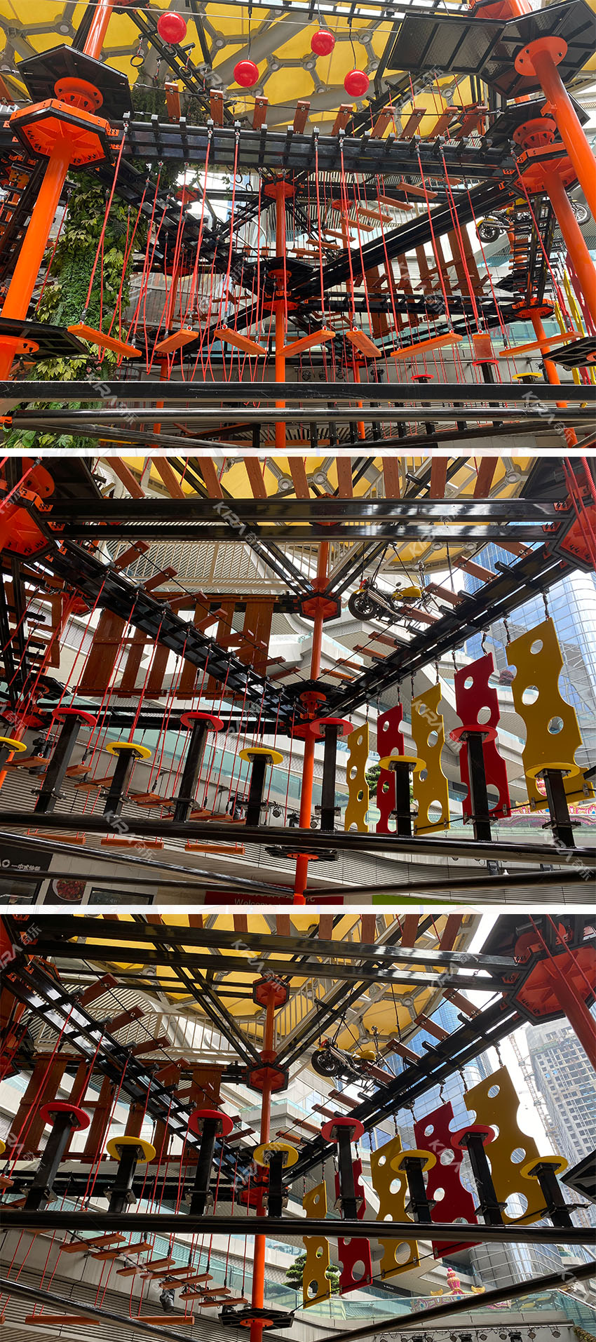奇樂游樂是游樂設備實力廠家,美國 Galaxy Multi Rides是奇樂在美國做的忍者道拓展項目,是一個在戶外搭建起來的拓展項目,室內大人,青少年挑戰,游玩的項目。本忍者道拓展有攀巖墻,空中攀爬挑戰關卡都能多種拓展項目,是由奇樂優秀的設計師團隊設計出來的方案,忍者道拓展項目在國外是非常流行的一種項目之一,它是可以鍛煉游玩者的體能,需要有優秀的身體素質,也能鍛煉游玩者的身體。