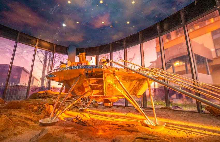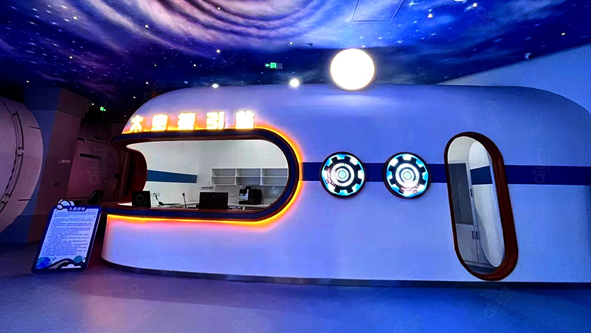 一層設(shè)計為展示區(qū),高度還原的太空站艙段、神舟飛船、長征火箭以及火星場景等等,能夠讓孩子們更加直觀、近距離地了解航天科技和太空知識,為進一步的探索太空打好基礎(chǔ)。