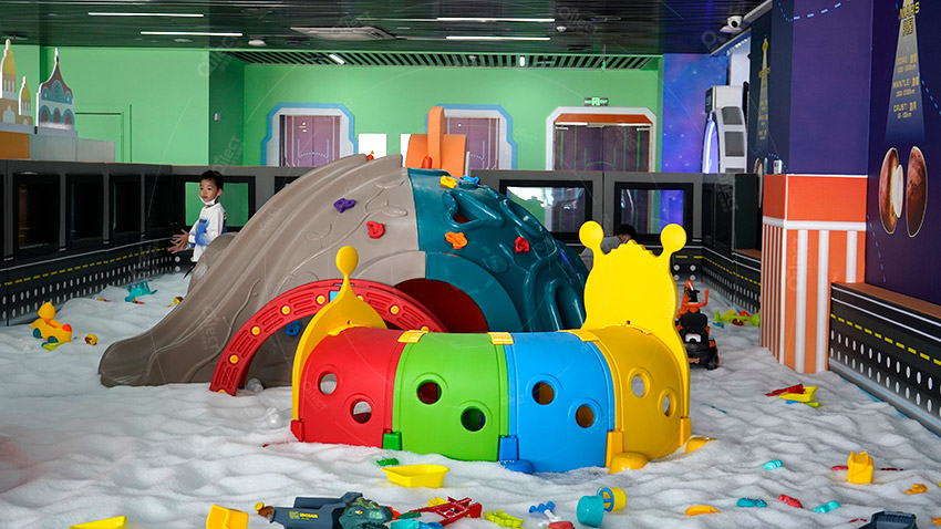 占地面積:1070㎡,分為10個功能區(qū)域:水吧,積木區(qū),益智手工區(qū),火星科考站,太空城堡,彈跳迷宮,魔鬼滑梯,蹦蹦云,墜落