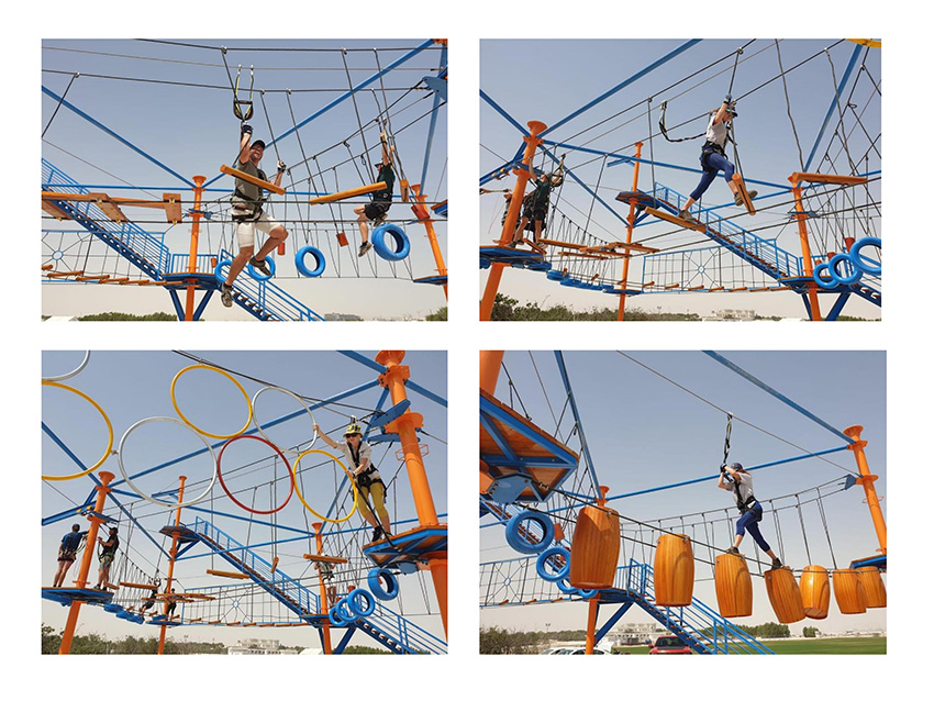 奇樂游樂是游樂設備實力廠家,美國 Galaxy Multi Rides是奇樂在美國做的忍者道拓展項目,是一個在戶外搭建起來的拓展項目,室內大人,青少年挑戰,游玩的項目。本忍者道拓展有攀巖墻,空中攀爬挑戰關卡都能多種拓展項目,是由奇樂優秀的設計師團隊設計出來的方案,忍者道拓展項目在國外是非常流行的一種項目之一,它是可以鍛煉游玩者的體能,需要有優秀的身體素質,也能鍛煉游玩者的身體。