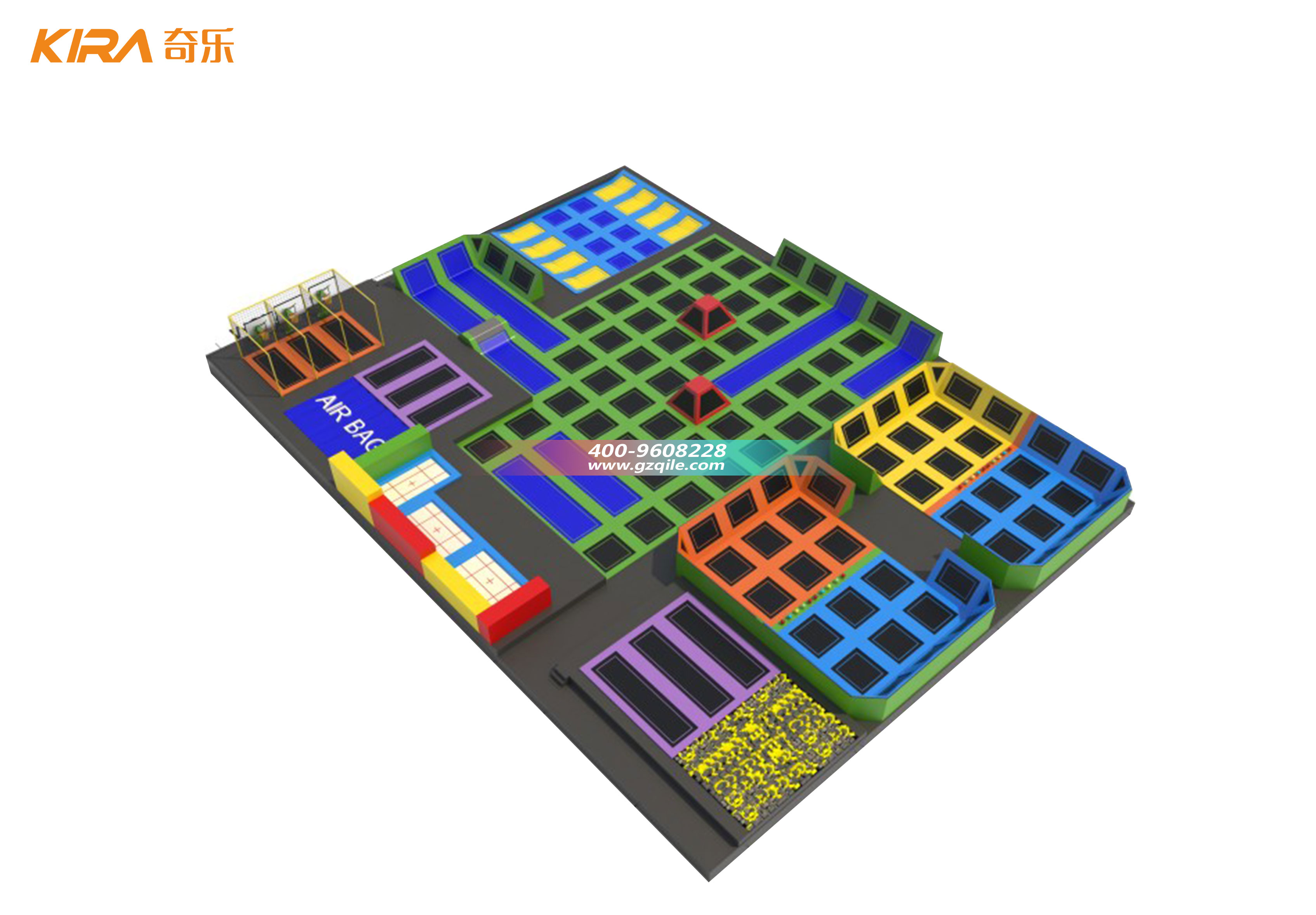專業的蹦床公園廠家如廣州奇樂游樂設備有限公司,已能提供成熟的模塊化解決方案。除了專業彈跳區,可以集成:忍者拓展道、極限攀巖墻、高空拓展、花式扣籃區以及專為低齡兒童設計的安全軟體區。