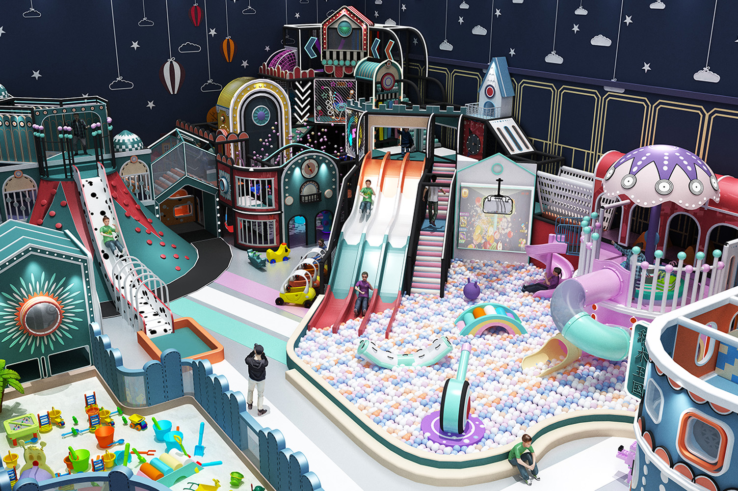 項目主色調以鐵綠色為主,場地空間布局層次分明、造型新穎規(guī)劃合理。以茉莉配色為設計理念,支持馬卡龍系列定制。內部游樂項目配置豐富齊全,包括滑滑梯、球池、椰子樹、彈跳迷宮、沙池、小蹦床等項目,造型設計活潑可愛充滿卡通風格,外觀色彩五彩繽紛能夠令孩子產生親切感,項目娛樂性互動性較強,清新而又舒適的游玩環(huán)境,能夠使孩子在玩樂中喚醒對美的渴望。