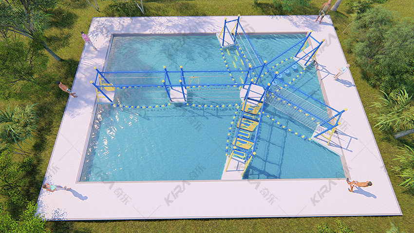 水上拓展探險類項目集親水性、趣味性、互動性為一體,通過不同的水上拓展關卡鍛煉參與者的肢體協調能力和平衡能力。水上拓展探險類項目布局設計不同,多種配色自由選擇,模塊可以自由組合,由多個不同的水上障礙關卡排列組合而成,帶給游客清涼一夏的水上娛樂體驗。