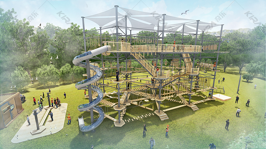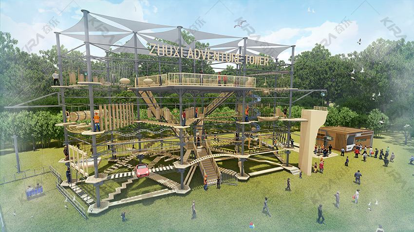 本項(xiàng)目適用于各種親子主題類的樂園,巧妙運(yùn)用“熊貓”IP造型設(shè)計(jì),集拓展、探險(xiǎn)、滑道、飛索、蹦極、不銹鋼滑梯、攀巖、爬網(wǎng)等46種不同運(yùn)動(dòng)體驗(yàn)的文化主題項(xiàng)目,結(jié)合“大灰熊”IP形象,融入相關(guān)設(shè)計(jì)元素,打造差異化的網(wǎng)紅IP主題性運(yùn)動(dòng)拓展?fàn)I地綜合體。 在裝飾設(shè)計(jì)上采用竹葉和竹竿的綠色設(shè)計(jì)元素,以原生態(tài)、自然風(fēng)格為基調(diào),采用原木、繩網(wǎng)和不銹鋼等柔韌度好的生態(tài)材料。滿足大眾貼近自然、主題鮮明、寓教于樂的兒童素質(zhì)訓(xùn)練教育親子樂園的精神訴求。
