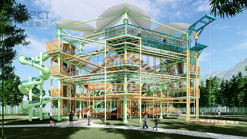,集拓展、探險、滑道、飛索、蹦極、不銹鋼滑梯、攀巖、爬網等