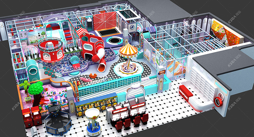 :螺旋滑梯、沙池、球池、互動投影、蹦床蜘蛛墻、闖關打卡、兒童攀巖等。