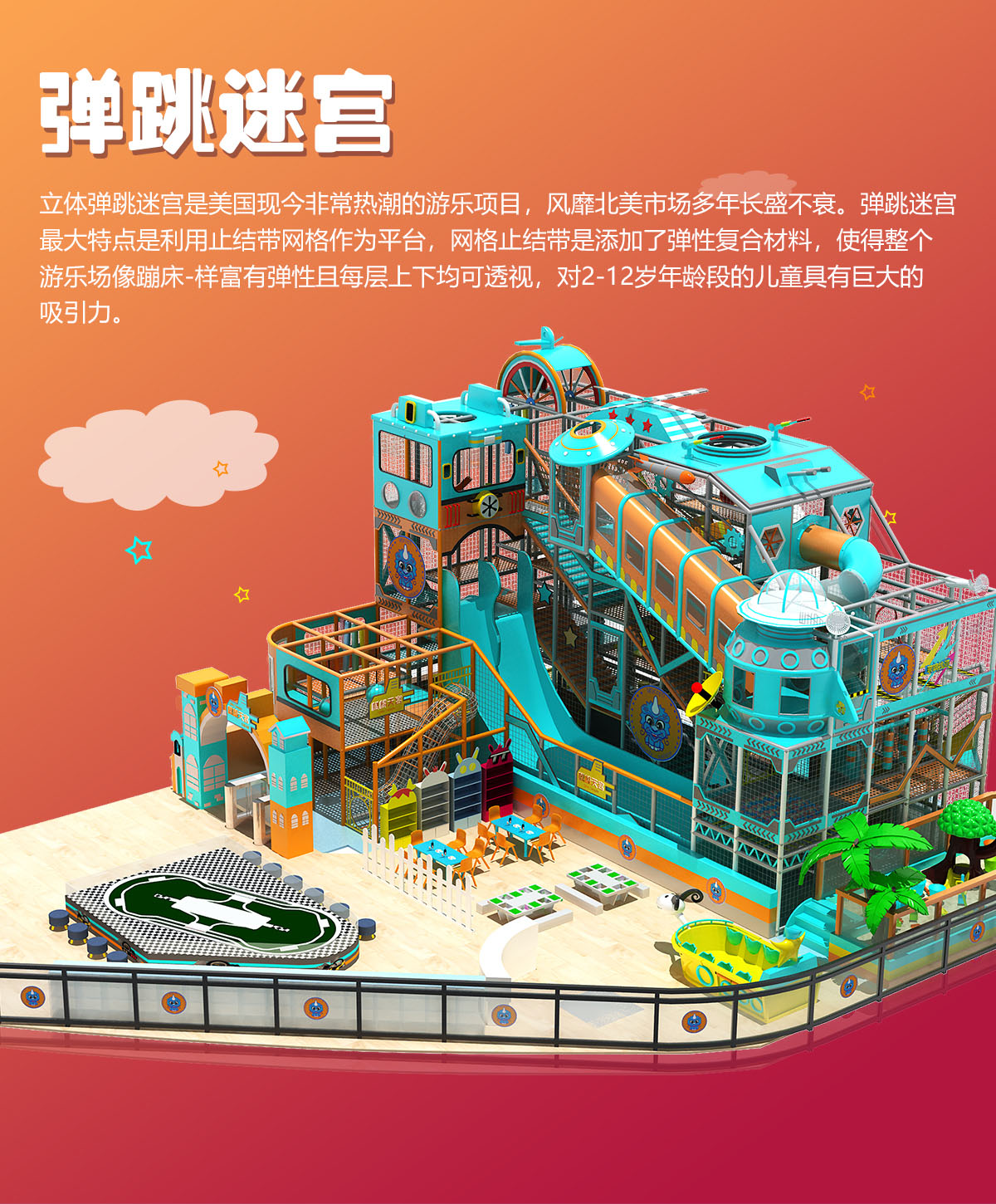 奇樂兒童樂園是包含淘氣堡、親子娛樂中心、彈跳迷宮、攀爬拓展、海洋球池等項目在內的一體化游樂設施。它有別于傳統的單一游樂設施,相比而言奇樂兒童樂園在項目上更加的豐富,在結構布局上更加的合理,在安全性穩定性上更有保障,在收益渠道上更加廣闊,是目前兒童樂園項目的主流。